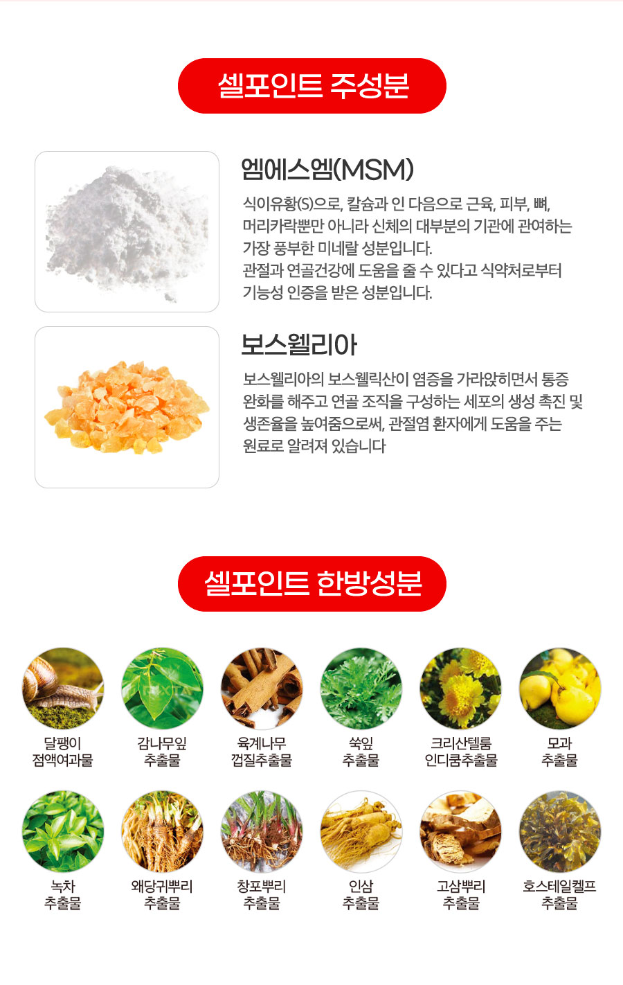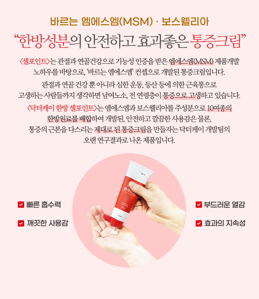한방성분의 안전하고 효과좋은 통증크림, 엠에스엠(MSM), 보스웰리아추출물, 한방추출물